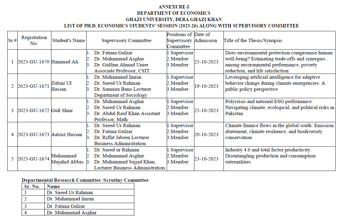 LIST OF PH.D. ECONOMICS STUDENTS’ SESSION (2023-26) ALONG WITH SUPERVISORY COMMITTEE