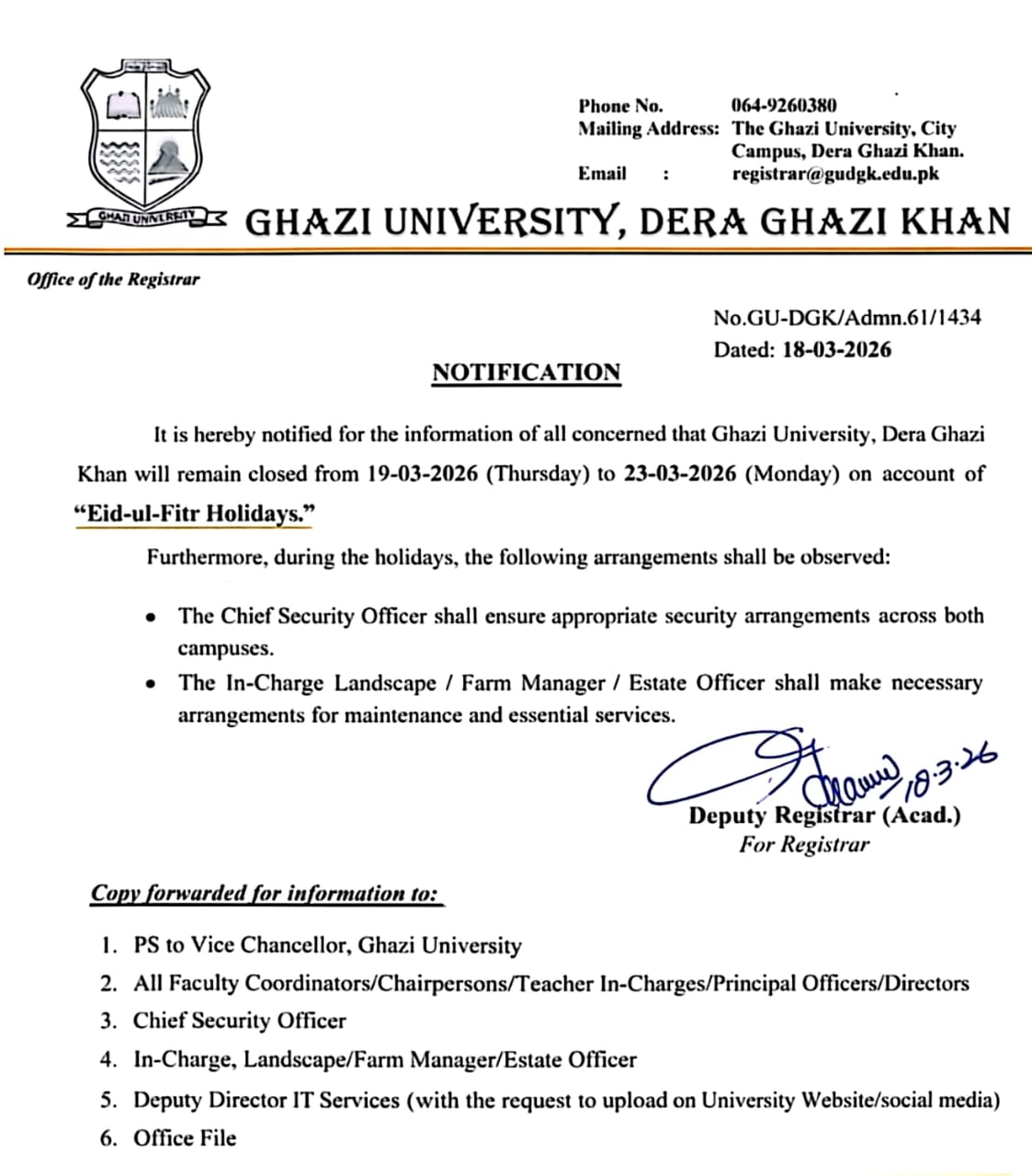 Notification: Eid-Ul-Fitr Holidays Announcement 2026