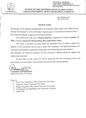 Call letters for Screening/written Test for the Posts of Deputy Registrar, Assistant Registrar, Deputy Treasurer & Assistant Treasurer