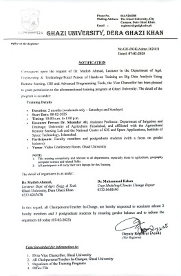 Regional Plan 9, Ghazi University, Dera Ghazi Khan