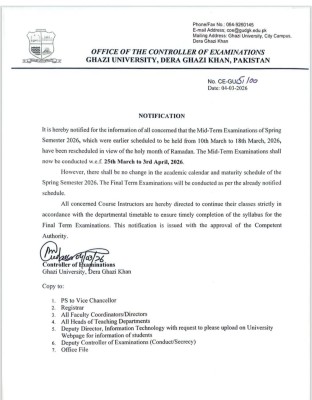 Notification : Reschedule of the Mid-Term Examination for Spring 2026