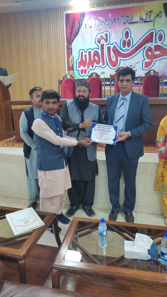 أج مورخہ 28 فروری 2022 بروز سوموار غازی یونیورسٹی ڈیرہ غازیخان میں طلبہ کی تخلیقی صلاحیتوں کو اجاگر کرنے کیلٸے ڈیبیٹ کلب کے زیر انتظام ایک تقریری مقابلے کا انعقاد کیا گیا۔ جس کا موضوع تھا ” ہے جرم ضعیفی کی سزا مرگ مفاجات“ جس کا أغاز شعبہ تاریخ کے طالبعلم قاری عزیر قاسم نے تلاوت قرأن پاک سے کیا اور محمد علی رضا نے شرف نعت حاصل کیا۔ اس پر وقار اور منفرد موضوع پر ہونے والے تقریری مقابلے کے مہمان خصوصی پروفیسر اعجاز رسول نورکا تھے۔ تقریری مقابلے کی نظامت کے فراٸض انچارج ڈیبیٹ کلب ڈاکٹر سہیل اختر سکھانی نے دیٸے جبکہ ججز کی ذمہ داری پروفیسر ڈاکٹر راشدہ قاضی اور ڈاکٹر جمیل الرحن شعبہ اردو نے سرانجام دی۔ غازی یونیورسٹی کے کثیر طلبہ نے اس تقریب میں شرکت کی۔ مقررین اپنے اپنے انداز میں موضوع پر خوب گفتگو کی۔ معزز مہمان نے اپنے خصوصی خطاب میں طلبہ کو تعلیم کے تربیت اور اعلی اخلاقی کردار کا حامل شہری بننے کی تلقین کی۔ اور اس مقابلے میں پوزیشن لینے والے طلبہ فریال زہرا اول, کاٸنات بی بی دوسری, , مبین اللہ کو تیسری پوزیشن لینے پر تعریفی سرٹیفیکیٹ سے نوازا۔ تقریب کے اختتام پر ڈاکٹر سہیل اختر نے واٸس چانسلر , ڈاٸریکٹر اسٹوڈینٹس افٸیرز ڈاکٹر محمد ابراہیم ,پروفیسر شعیب رضا سمیت دیگر شریک اساتذہ کرام اورطلبہ بالخصوص شعبہ تاریخ کے طلبہ شکریہ ادا کیا۔