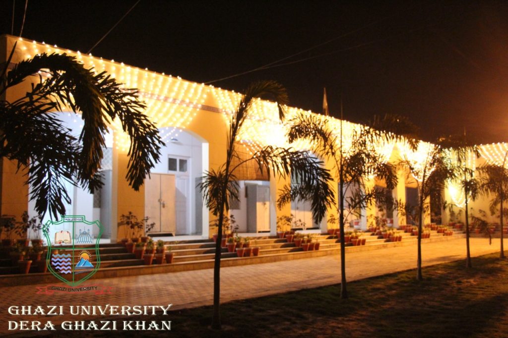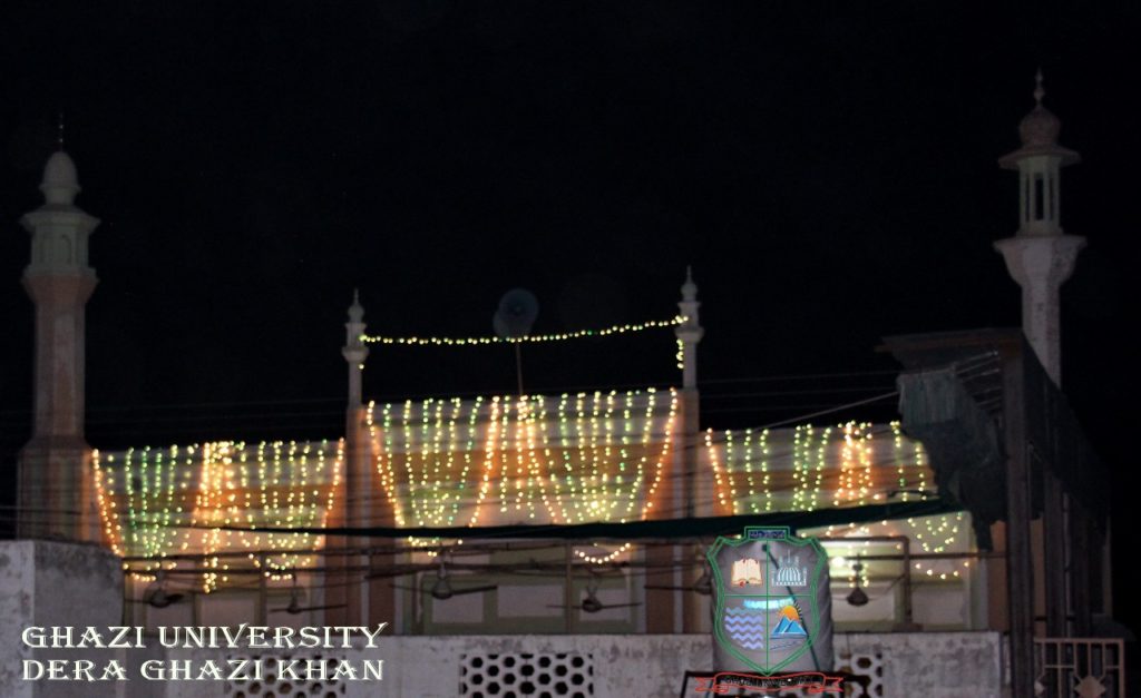 An illuminated view of various locations of Ghazi University, decorated with sparkling Lights in connection with EID-E-MILAD-UN-NABI(PBUH) Celebrations..