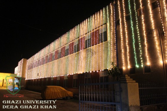 An illuminated view of various locations of Ghazi University, decorated with sparkling Lights in connection with EID-E-MILAD-UN-NABI(PBUH) Celebrations..