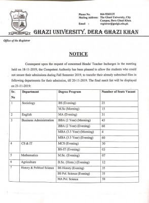 Interview of Visiting faculty at Ghazi University re-scheduled as under: